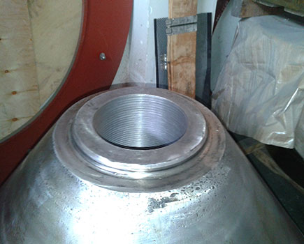 2014-06-10我司按標(biāo)準(zhǔn)維修工藝,對動錐體鑲套,重新加工螺紋;對動錐體外錐面補焊加工。維修后重新安裝球體。
