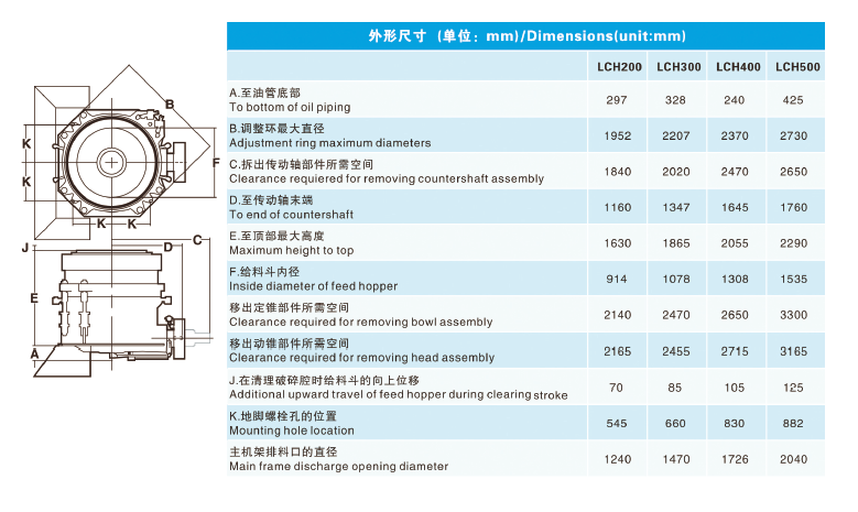 LCH 系列圓錐破碎機以較低的速度運轉,就可以改變產品的級配,以便生產更優(yōu)的產品,提高產量。